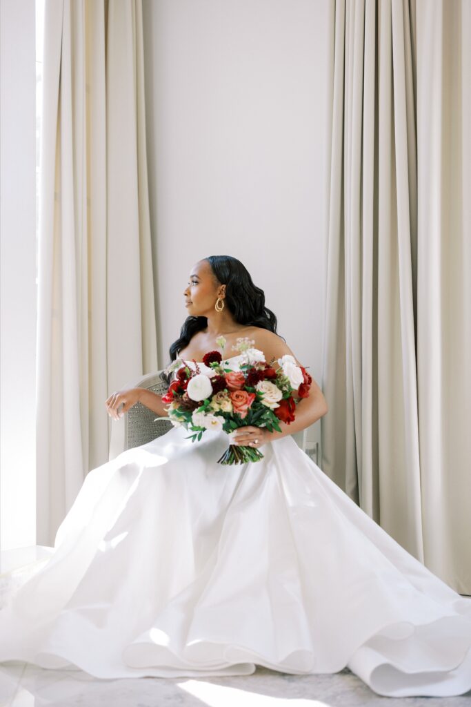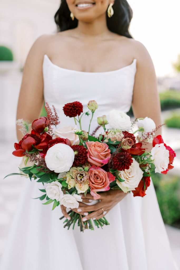 The floral design stole the show. Soft pinks, bold reds, and classic whites filled the ceremony space with warmth and romance. These vibrant blooms perfectly balanced the elegance of The Hillside Estate’s bright interiors. Each bouquet and centerpiece told its own story of love and celebration.